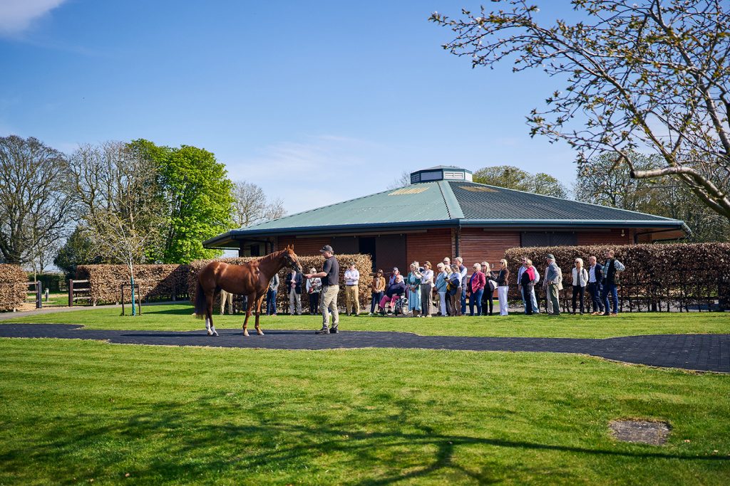 On arrival guests were divided into smaller horse-friendly groups to visit different parts of Newsells Park Stud. Stops included the Stallion Barn, where guests were treated to a viewing of all the stallions standing at the stud: A’Ali, Isaac Shelby, Without Parole and Nathaniel. Nathaniel, a top-class racehorse and Classic producing sire, is described by some as a ’national treasure’ and we have named our signature sparkling wine Blanc de Blancs in his honour.