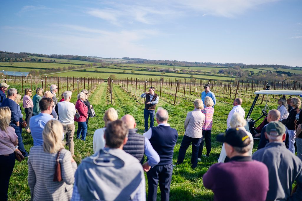 Just over the hill overlooking the mares and foals, lies the vineyard where guests were invited to stroll and ask questions whilst enjoying the views of the horses grazing in the paddocks. In the vineyard, expert Viticulture Climatologist and CEO of Vinescapes, Dr Alistair Nesbitt, gave an informative talk on the changing climate and how it has positively impacted wine production to the advantage of wineries in England; he also provided an update on the Newsells vineyard planted in 2022. Newsells Vineyard Manager, Scarlett Willson was also on hand to answer any questions on the day-to-day care of the vines, the frost protection used and information about the art of pruning.